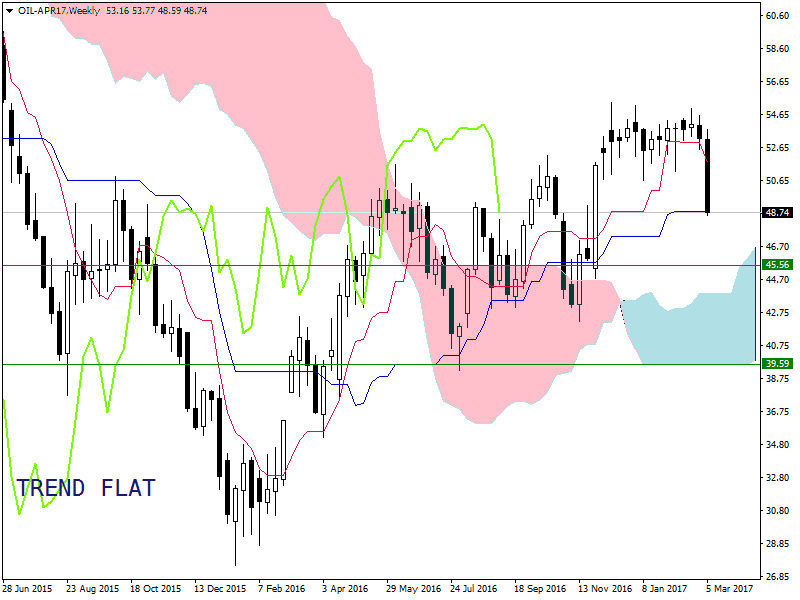- il primo key level da rompere al ribasso è dato dalla kijun-sen a circa 48 dollari